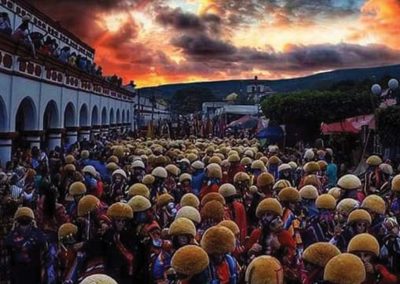 Desayuno. La mañana brumosa nos invita a pasear en el centro histórico de San Cristóbal de las Casas hasta el mercado indígena, el museo del ámbar y el deslumbrante Templo de Santo Domingo, Prepárese para las grandes emociones que le tienen reservadas las comunidades tsotsiles de San Juan Chamula (agua espesa) y Zinacantan (Lugar de murciélagos). La iglesia de San Juan bañada de copal (incienso indígena) y alfombrada con aromáticas hojas de pino le envolverán en una atmósfera mágica. Los vivos y abrigados colores (fucsia, lila, rosa) de las expertas tejedoras de Zinacantán le harán realizar las primeras compras. Traslado al aeropuerto de Tuxtla Gutierrez.