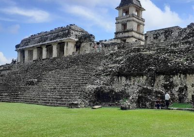Desayuno. Como broche de oro a nuestro viaje por Chiapas nos espera desafiante Palenque: la grandeza de sus construcciones y la invaluable mezcla de piedra blanca con el verde esmeralda de la Selva le dan un aspecto único a esta zona arqueológica. Visita al Templo de las Inscripciones, El Palacio, Templos del Sol y la Cruz Foliada; baño de la Reina en el arroyo Otulum… Comida. Continuación hacia el aeropuerto de Villahermosa.