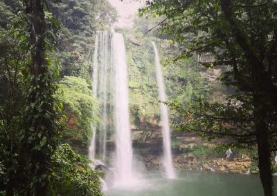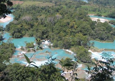 Desayuno. Siguiendo un paisaje sinuoso y tupida vegetación llegaremos al río Yaxhá (Agua Azul) para disfrutar las impresionantes Cascadas de Agua Azul, el color azul añil del agua, el verde de la vegetación, la brisa, el sonido inagotable… convierten a este lugar en uno de los más espectaculares e inolvidables de México. Comida. En otro ambiente natural de selva tropical y refrescante paisaje disfrutaremos de la hermosa Cascada Misol há. Continuación a Palenque. Alojamiento.