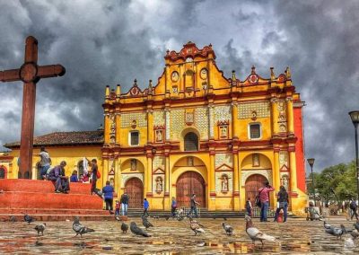 Desayuno. La mañana brumosa nos invita a pasear en el centro histórico de San Cristóbal de las Casas hasta el mercado indígena, el museo del ámbar y el deslumbrante Templo de Santo Domingo, Prepárese para las grandes emociones que le tienen reservadas las comunidades tsotsiles de San Juan Chamula (agua espesa) y Zinacantan (Lugar de murciélagos). La iglesia de San Juan bañada de copal (incienso indígena) y alfombrada con aromáticas hojas de pino le envolverán en una atmósfera mágica. Los vivos y abrigados colores (fucsia, lila, rosa) de las expertas tejedoras de Zinacantán le harán realizar las primeras compras. Tarde libre.