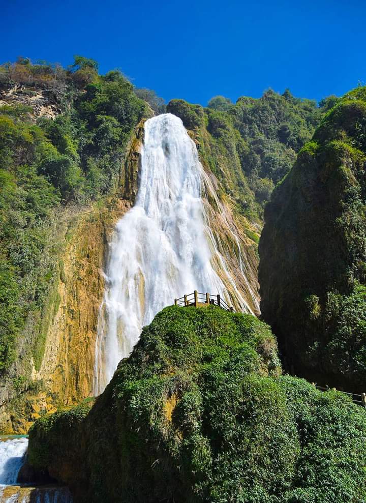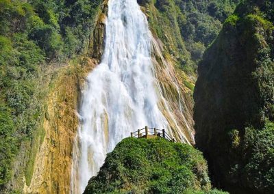 Desayuno. Siguiendo un paisaje sinuoso y túpida vegetación llegaremos al río Yaxhá (Agua Azul) para disfrutar las impresionantes Cascadas de Agua Azul, el color azul añil del agua, el verde de la vegetación, la brisa, el sonido inagotable… convierten a este lugar en uno de los más espectaculares e inolvidables de México. Comida. En otro ambiente natural de selva tropical y refrescante paisaje disfrutaremos de la hermosa Cascada Misol há. Continuación a Palenque. Alojamiento.