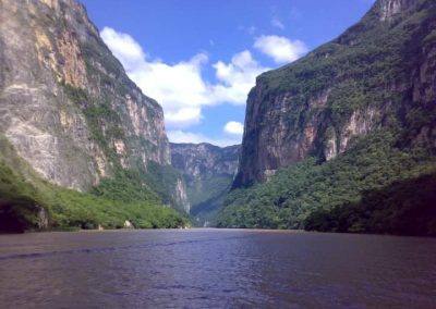 Recepción en el aeropuerto de Tuxtla Gutiérrez y continuación al embarcadero de Cahuaré. Nada más romántico para asomarnos a Chiapas que navegar río abajo el curso del Grijalva y adentrarnos en el imponente Parque Nacional Cañon del Sumidero, admirando el caballito de mar, el escudo de Chiapas, la cueva de colores, la cascada árbol de navidad y la presa Chicoasen. Comida. En Chiapa de Corzo disfrutaremos de tiempo libre para pasear y visitar su fuente estilo mudéjar y el templo de Santo Domingo. Ascendiendo a los Altos de Chiapas llegaremos a San Cristóbal de las Casas. Registro en el hotel y tiempo libre. Alojamiento.